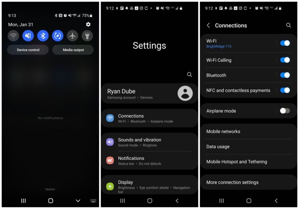 Om det är aktiverat, men Philips Hue-lampor fortfarande inte kan nås, måste du gräva lite djupare. På Android öppnar du enhetens inställningsmeny, väljerAnslutningar, och titta på nätverksnamnet underWi-Finära väljaren. På iPhone väljer duInställningar>Wi-Fifrån din startskärm. Du bör se en blå bock bredvid namnet på nätverket du är ansluten till.