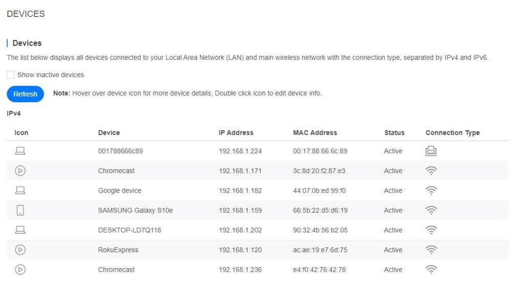 Logga in på din router som administratör, och under nätverksanslutningsmenyn (detta varierar från router till router), hittaEnheteralternativ.