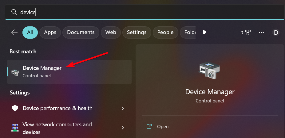 - TypEnhetshanterareni sökfältet och tryck på Enter.