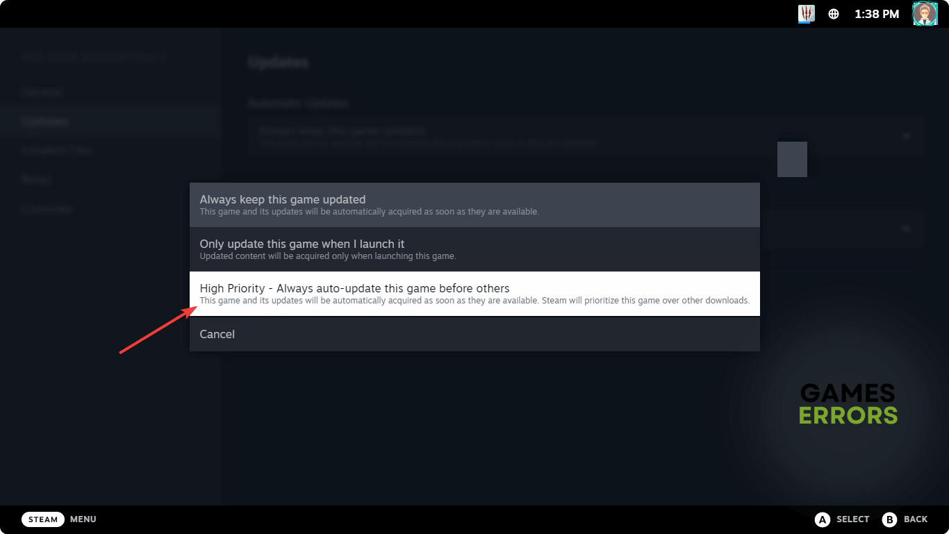 - Navigera till spelet du vill uppdatera.