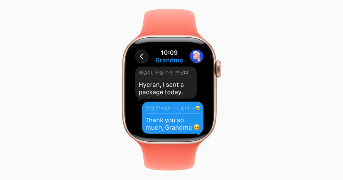 Meddelanden på watchOS 26 blir smartare med AI-genererade svarsförslag, vilket gör snabba svar mer användbara, men till en början bara tillgängliga på engelska. Live Translation kommer automatiskt att översätta inkommande och utgående meddelanden till ditt föredragna språk, vilket underlättar kommunikationen mellan olika språk.