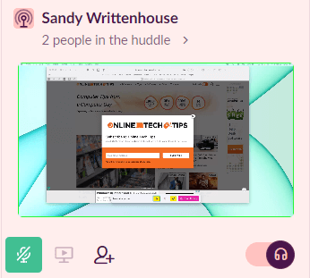 - Dina huddle-deltagare ser sedan ett litet fönster i det lilla huddle-fönstret. När de väljer det öppnas din delade skärm i ett större fönster.