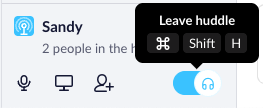 Du kan också använda kortkommandon för att lämna en huddle. På Windows, tryckCtrl+Flytta+Hoch på Mac, användKommando+Flytta+H.