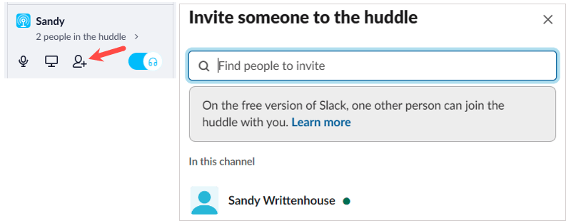 Huddles i Slack är bekväma platser för informella diskussioner och skärmdelning. När det inte räcker med att skriva dina meddelanden, bjud in dina kollegor till en huddle. Håll utkik efter nya funktioner som kommer till samlingar på vägen, som videosamtal och meddelandetrådar.