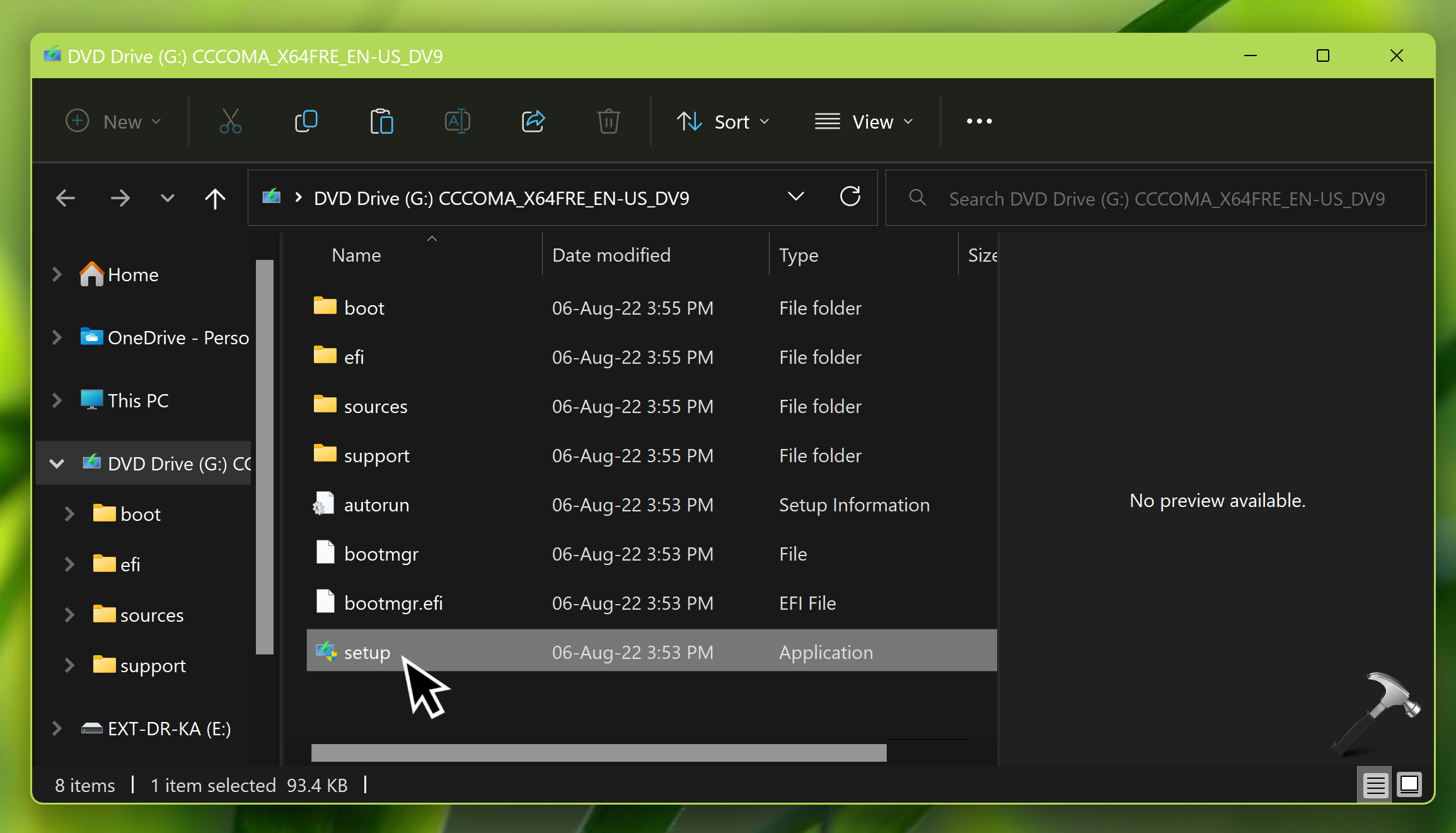När ISO-filen har laddats ner kan du bara dubbelklicka på den och montera den på en DVD-enhet. Gå sedan till den monterade DVD-enheten och dubbelklicka påsetup.exefil för att starta installationen för Windows 11 25H2.
