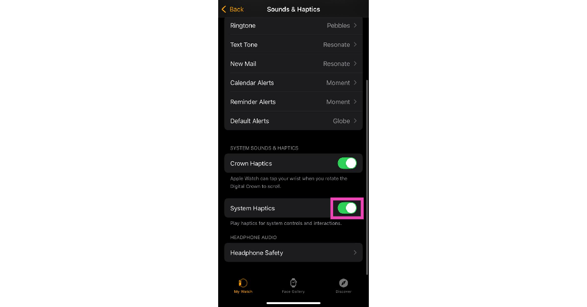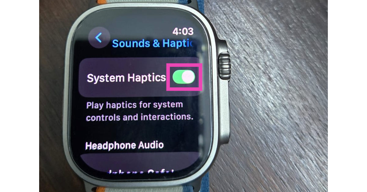 Din Apple Watch slutar vibrera så snart "Haptic Alerts" stängs av. Gå tillInställningar>Ljud & Haptics, och slå på vippknappen bredvid System Haptics.