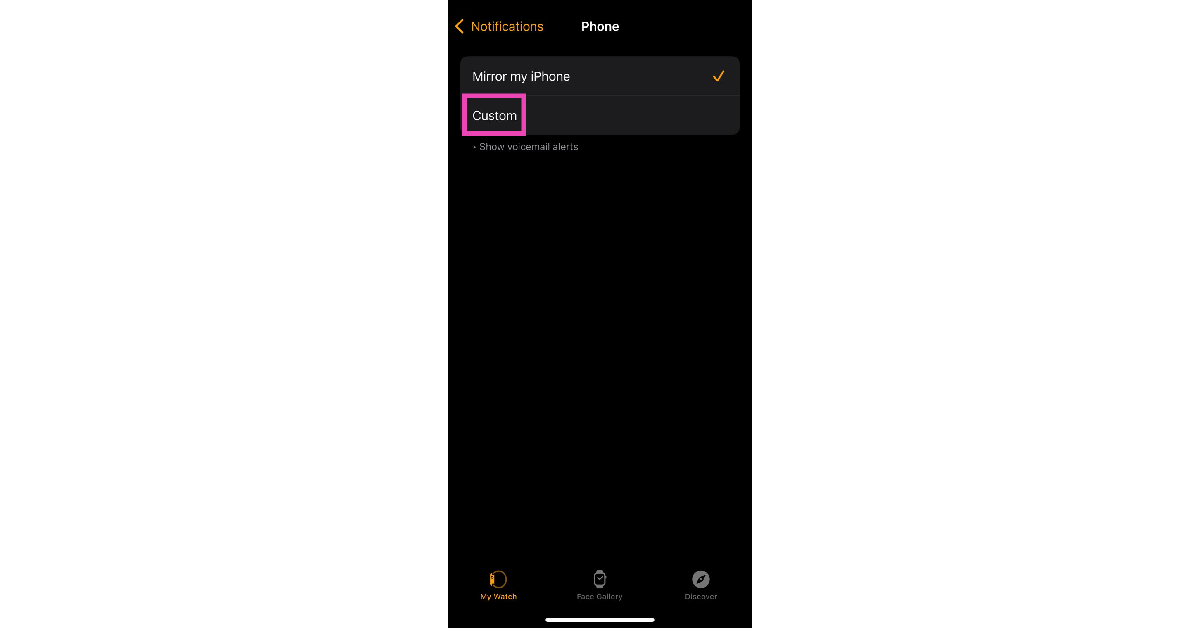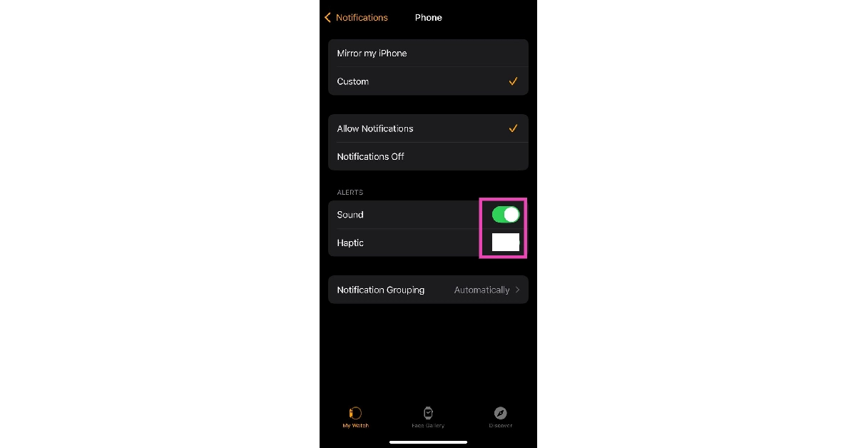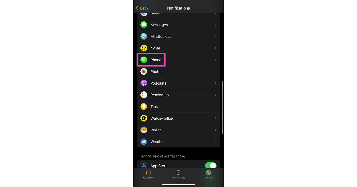 Du kan ställa in din Apple Watch så att den vibrerar vid samtal genom att gå till Watch-appen på din iPhone och navigera tillAviseringar>Telefonoch slå på vippströmbrytaren bredvid "Haptics".