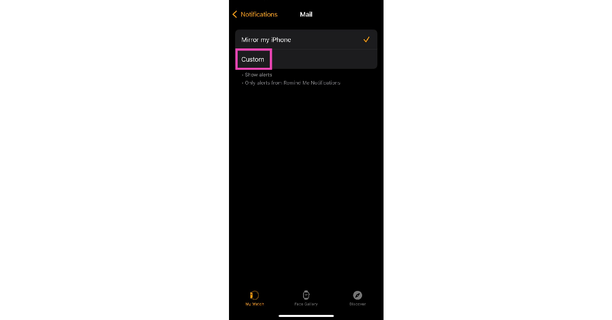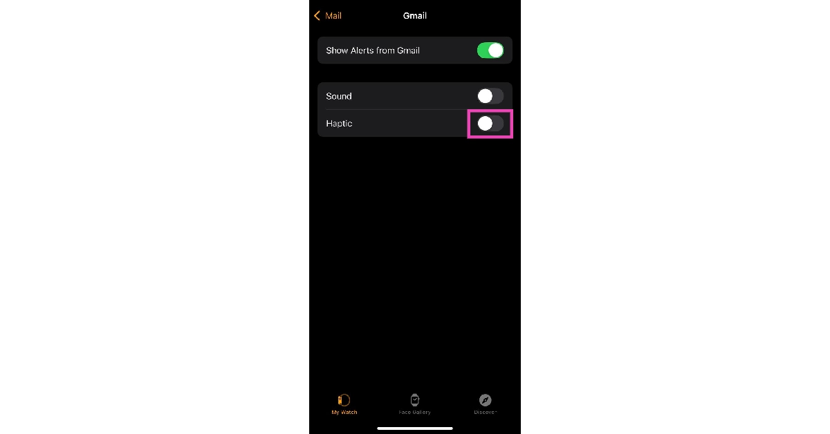 Om du inte vill ha vibrationsfeedback för aviseringarna från en viss app, starta helt enkelt Apple Watch-appen på din iPhone och välj appen i fråga i meddelandeinställningarna. Tryck på Anpassad och stäng av vippknappen förHaptisk.