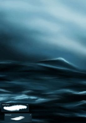 Procreate har inga exakta akvarellpenslar men det finns två förinstallerade penslar som du kan kombinera för att ge effekten av akvarelldrag. Prova att använda vattenborsten och splatterborsten för att imitera akvarelleffekter på din duk.