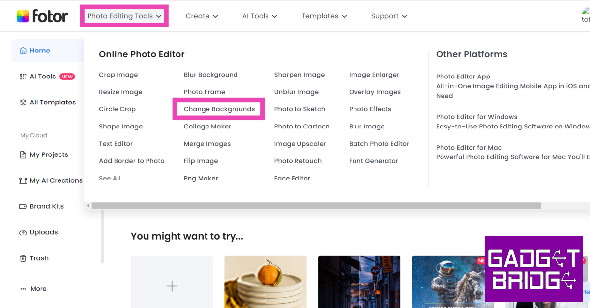 Steg 2:Flytta markören tillFotoredigeringsverktygoch väljÄndra bakgrund.