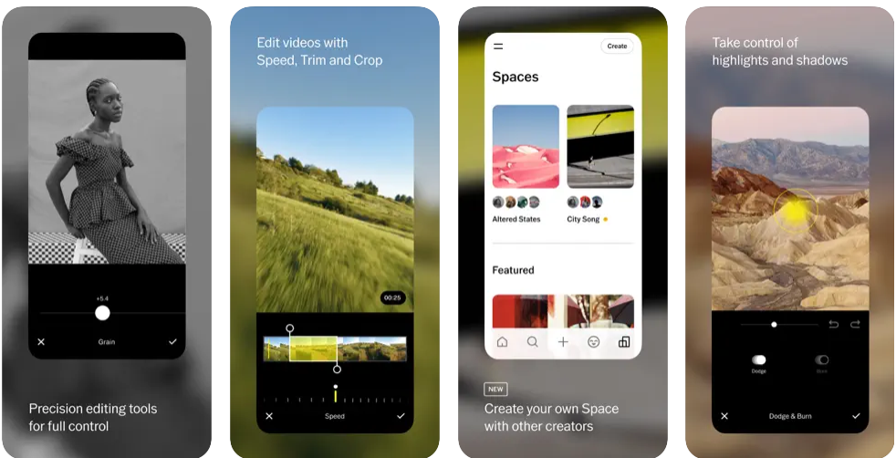 - VSCO Spaces som ger ett säkert utrymme för kreatörer att workshoppa idéer, dela inspiration och ansluta genom kollektiva gallerier.