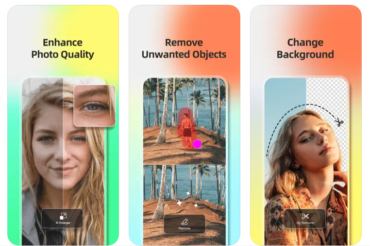 Vill du ha fler Remini-alternativ? Cutoutpro är en användbar AI-driven app som du kan använda. Du kan hitta många AI-funktioner här. Inte bara fotoförstärkaren att använda, utan du kan också välja borttagning av bildbakgrund, bakgrundsspridning och till och med använda AI för att förverkliga kreativitet.