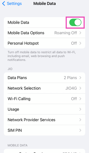 Slå på och av den personliga hotspoten och mobildata. Se till att ditt mobila internetabonnemang är aktivt och har tillräckligt med data. Om du tror att ett bakgrundsproblem orsakar detta problem, starta om din iPhone.