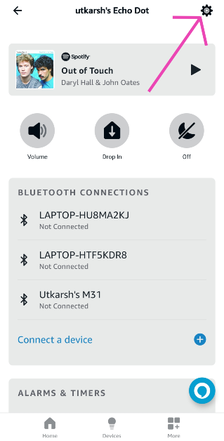 Om du vill spela musik på din Echo-enhet med din telefon måste båda enheterna vara på samma WiFi-nätverk. Om du använder din Echo-enhet som en Bluetooth-högtalare, se till att den är ansluten till din telefon via Bluetooth.