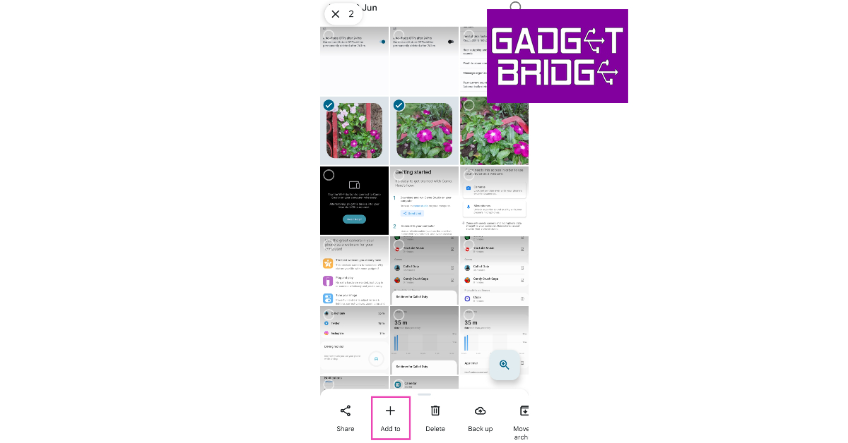 Steg 2:Välj de två bilder du vill sy ihop. Du kan göra detta genom att trycka länge på en bild och sedan helt enkelt trycka på den andra.