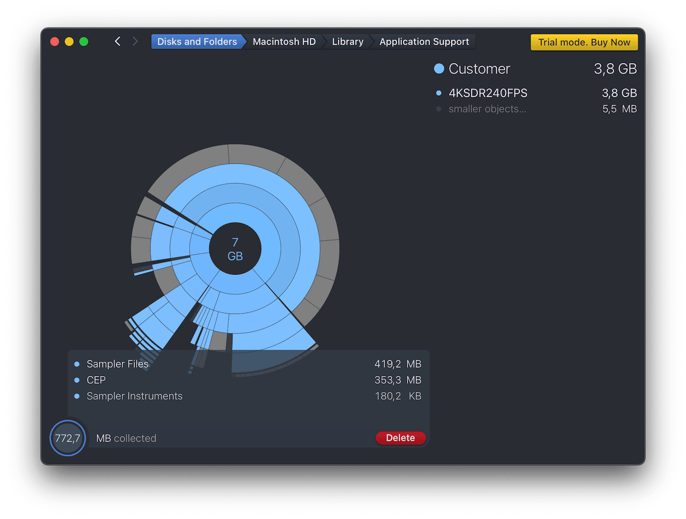 Dess användargränssnitt är polerat. Stora, färgglada segment ger dig en intuitiv känsla av var megabyten hopar sig. Skanningarna är snabba tack vare cachad metadata, och prestandan på min test-MacBook Pro var lyhörd även när jag skannade min externa enhet med den kostnadsfria testversionen.