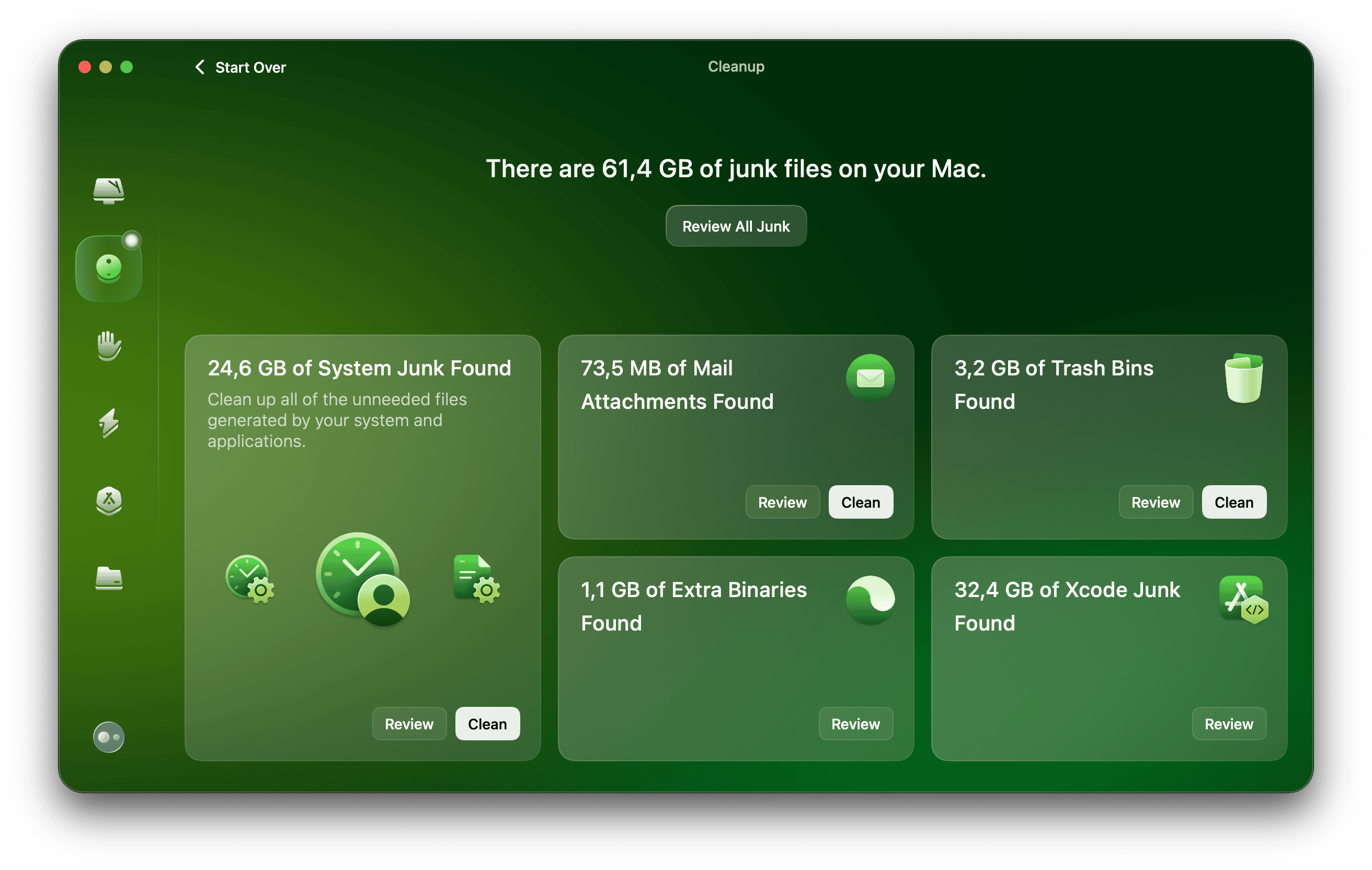 Medan du läser kan CleanMyMac städa. Sortera igenom fem år av röran på en minut — njut av snabbare prestanda och gigabyte ledigt utrymme.