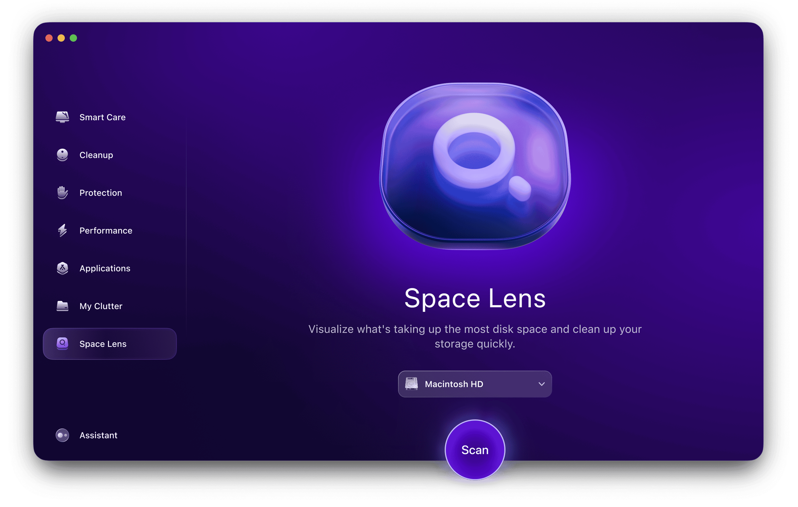 Öppna appen och klicka på Space Lens i sidofältet.