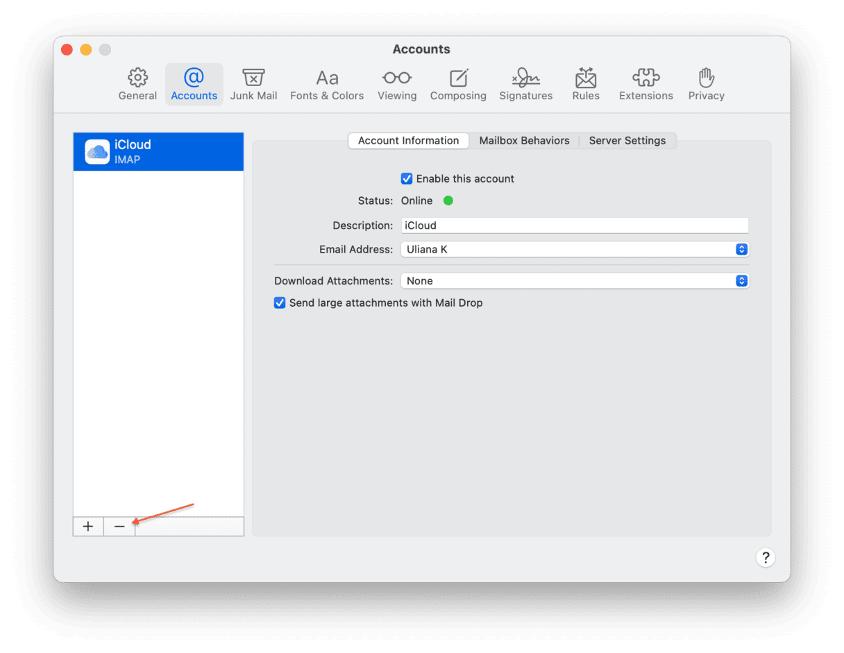 Du behöver inte nödvändigtvis ta bort Mail-appen; istället kan du ta bort e-postkonton. På så sätt kommer alla dina meddelanden att raderas på Mac. Däremot kommer deras kopior fortfarande att lagras på e-postservrar.