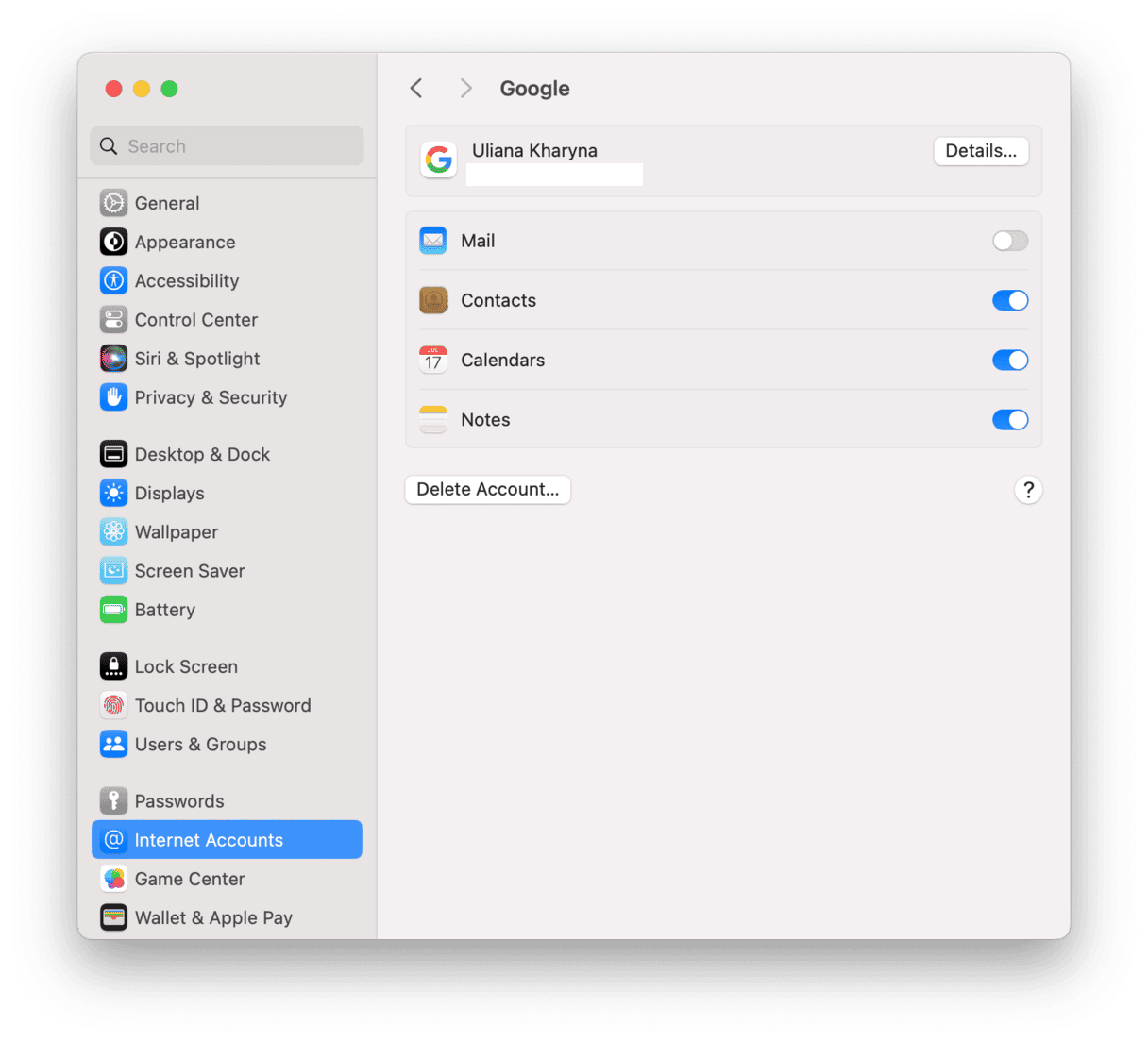 Klicka på Apple-menyn och välj Systeminställningar och sedan Internetkonton. Leta reda på de konton du för närvarande använder i Mail, välj dem ett i taget och inaktivera "Mail".