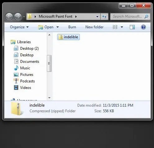 Steg 1: Leta reda på zip-filen som innehåller teckensnittet som du vill installera. Jag installerar ett typsnitt som heter "Outplånligt" på bilden nedan.