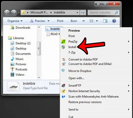 Steg 4: Högerklicka på teckensnittsfilen och klicka sedan påInstalleraalternativ.