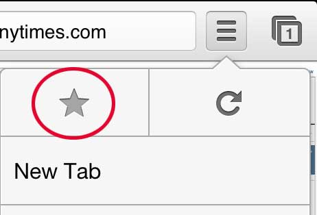 Öppna Chrome-alternativmenynSteg 4: Tryck på stjärnikonen högst upp i menyn.