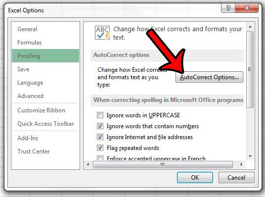 Steg 5: Klicka påAutokorrigeringsalternativknapp.