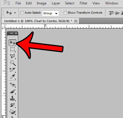 Verktyget Flytta finns vanligtvis högst upp i verktygslådan och är det som ser ut som en pil med mindre korsande pilar bredvid. Ikonen pekas ut i bilden nedan.
