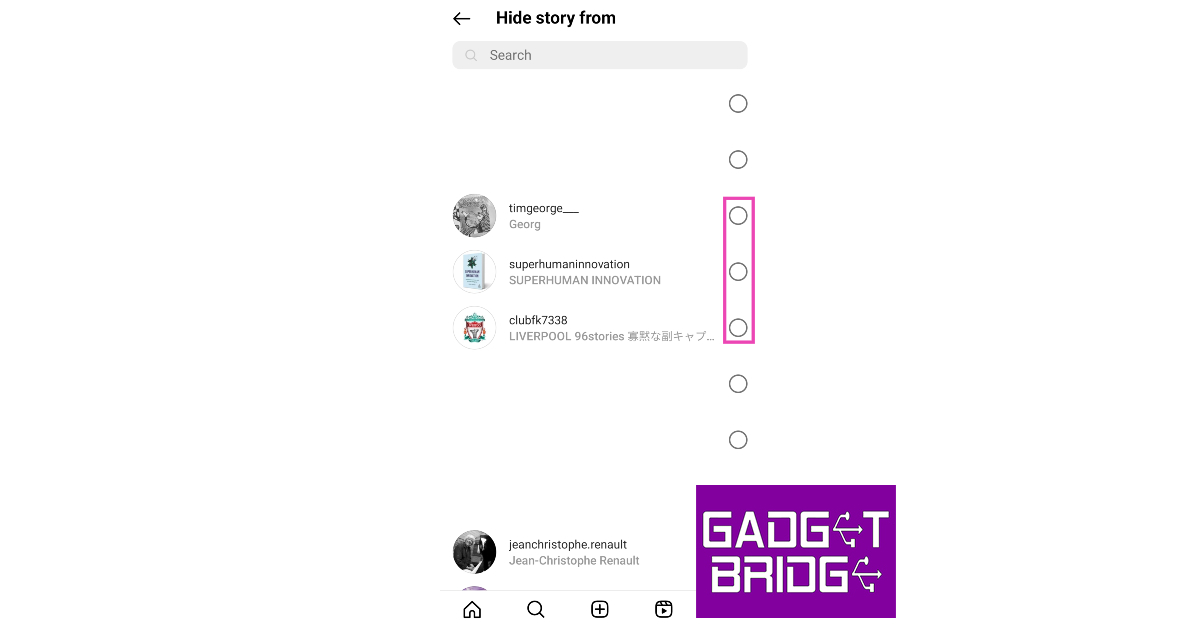 Steg 5: Välj kontonsom du vill dölja din berättelse från och leva. Gå tillbaka när du är klar.