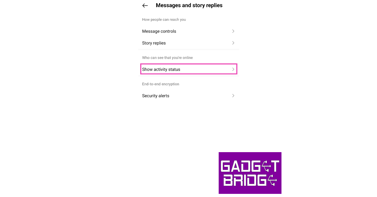 Gå tillProfil>Meny>Inställningar och sekretess>Meddelanden och berättelsesvar>Visa aktivitetsstatusoch stäng av dess vippreglage.