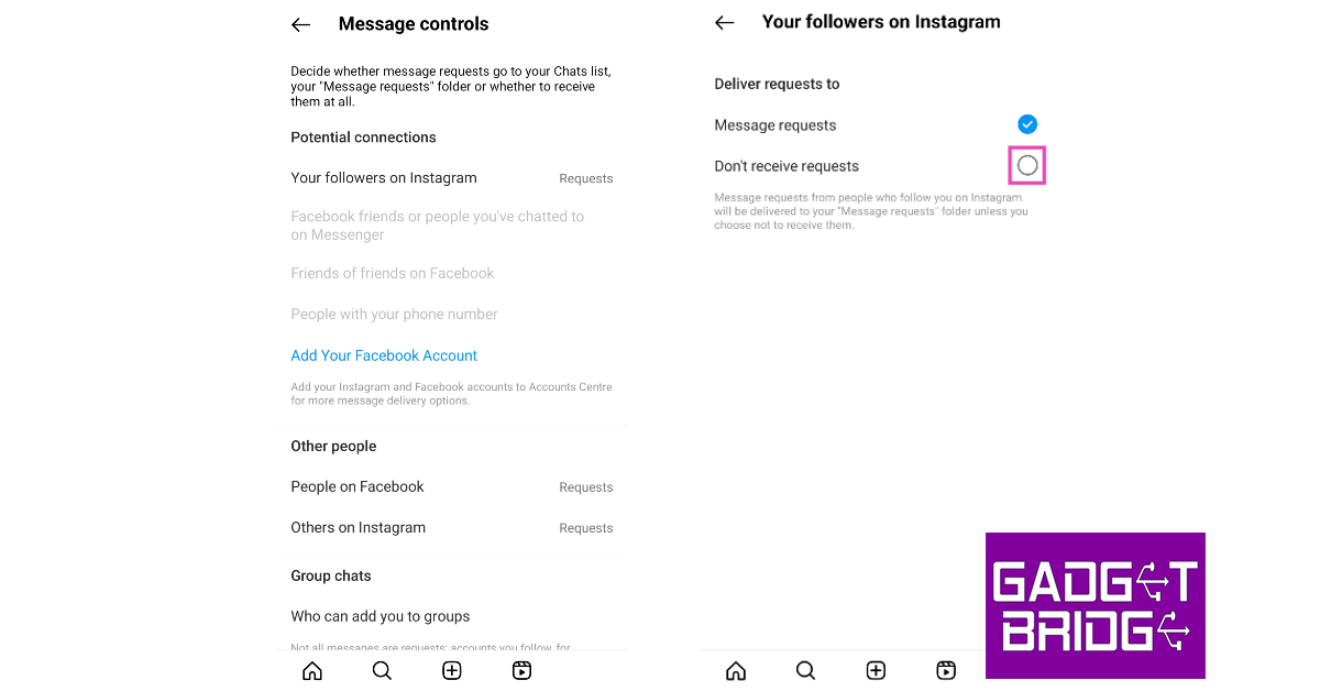 Endast meddelanden från personer du följer visas i din meddelandeinkorg. Meddelanden från andra personer hamnar i mappen "Requests". Följ dessa steg för att sluta ta emot förfrågningar.