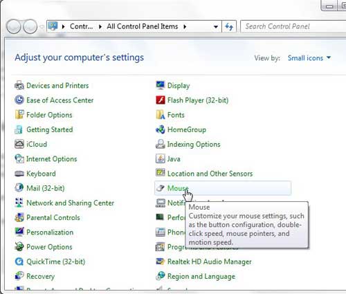 Det här är menyn dit du ska gå om du vill lära dig att sakta ner eller snabba upp muspekaren.