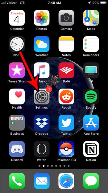Stegen i den här artikeln utfördes på en iPhone 7 Plus i iOS 12. Observera att den här guiden förutsätter att du tidigare har skapat ett lösenord för skärmtidsfunktionen på din iPhone, men att du vill ändra detta lösenord. Det här är ett annat lösenord än det du använder för att låsa upp din iPhone, så det behöver inte vara detsamma, och det kommer inte att påverka enhetens lösenord.