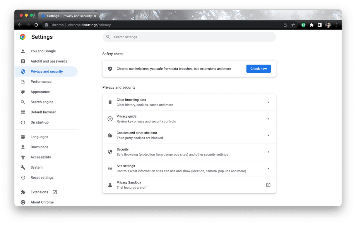 - Välj Sekretess och säkerhet i sidofältet.