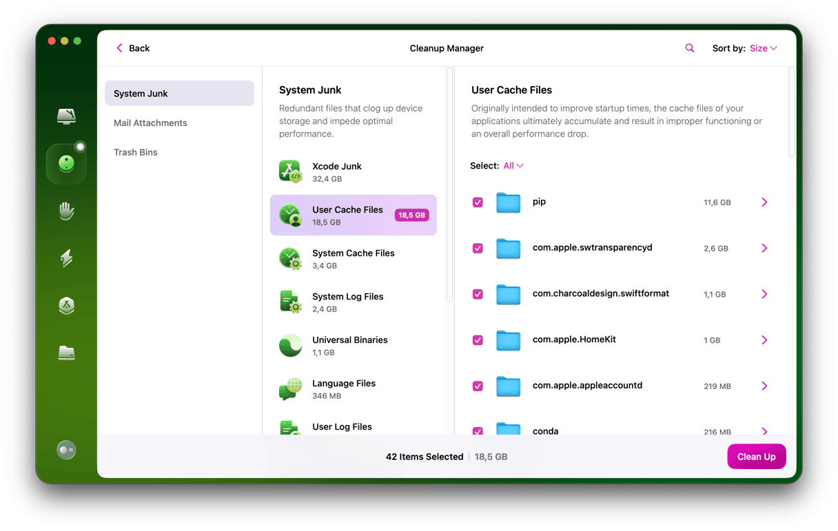 - Alternativt kan du klicka på Rensa utan att granska detaljer och ge din Mac en grundlig skräprensning. Oroa dig inte, bara de filer som säkert kan tas bort är förvalda för borttagning.