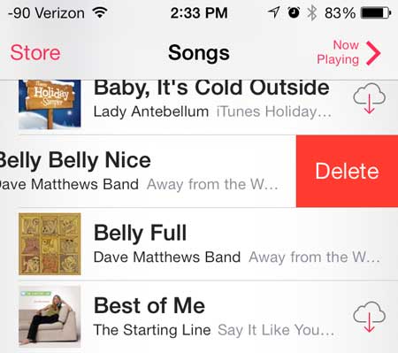 Hur man tar bort låtar på iPhone 5 i iOS 7