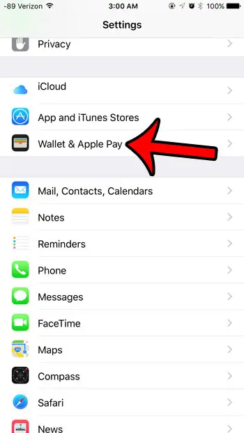Steg 2: Rulla ned och tryck påPlånbok och Apple Payknapp.