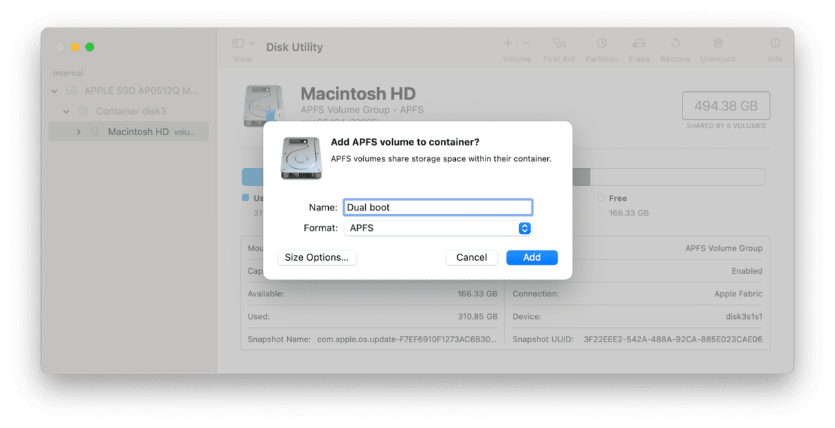 Om du behöver dubbelstarta två versioner av macOS är det enklaste sättet att göra det att skapa en ny volym eller partition på din startskiva och använda den för det andra systemet. Följ instruktionerna ovan för att göra det.