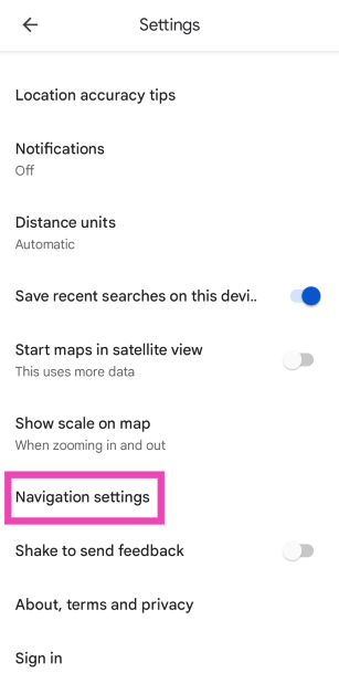 Steg 4:Rulla ned och väljNavigationsinställningar.