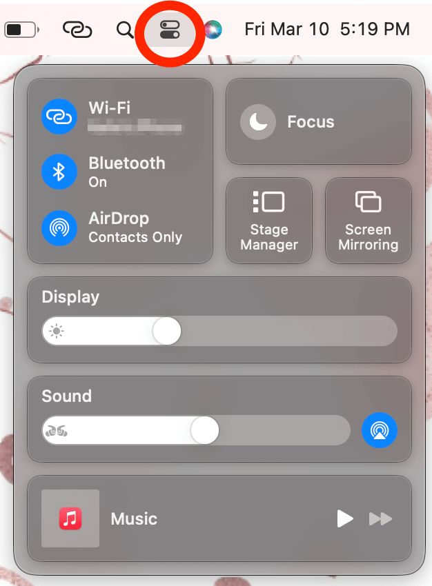 För att göra detta klickar du på kontrollcentermenyn längst upp till höger på skärmen.
