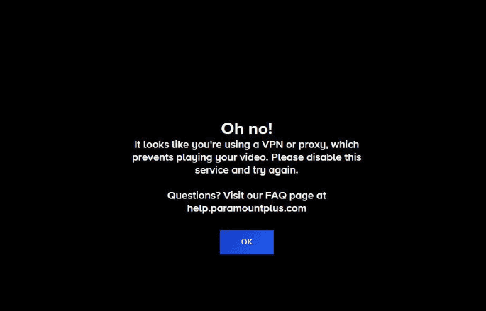 paramount plus ogiltig token Varning