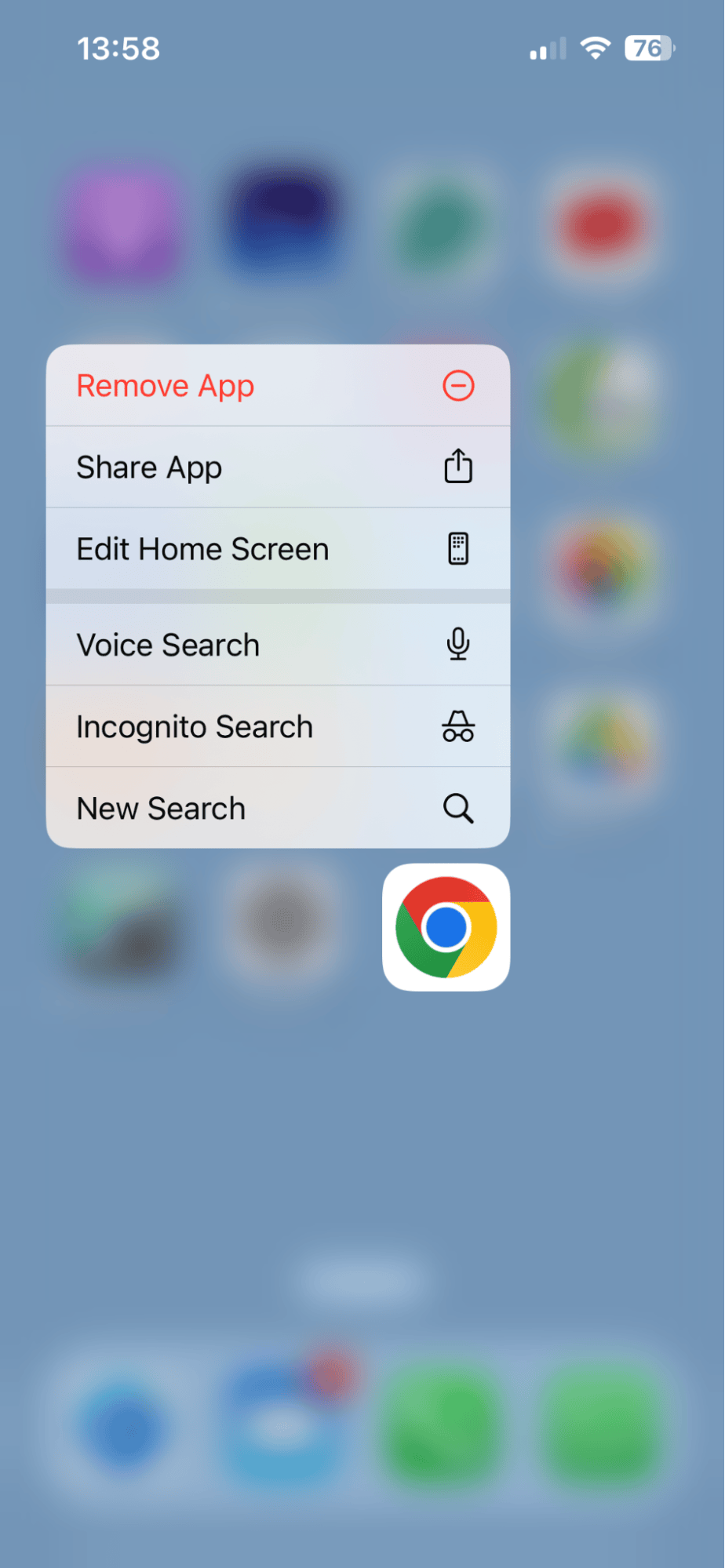- Tryck och håll ned Chrome-ikonen.