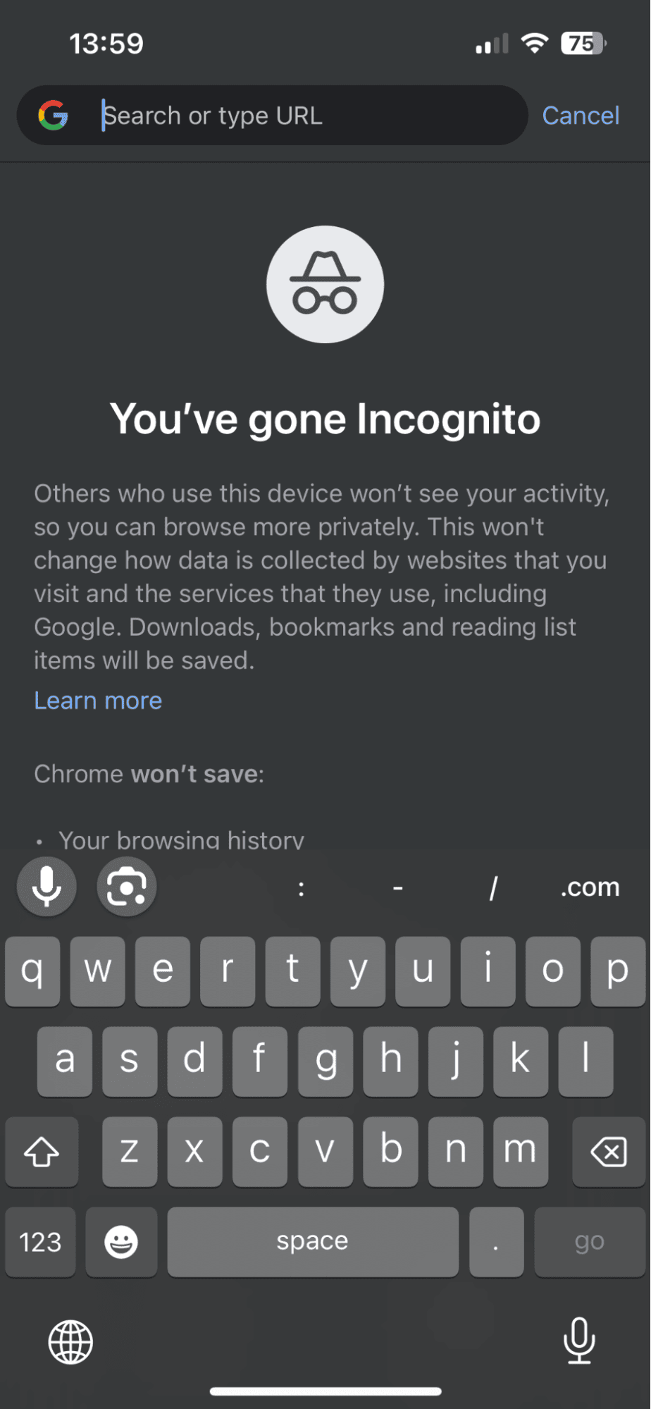 - Tryck på inkognitosökning.