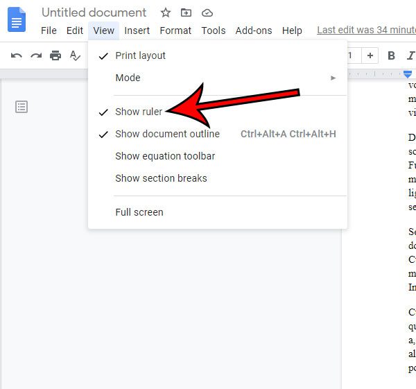 Steg 3: Klicka påVisa linjalalternativet om det inte redan är markerat.