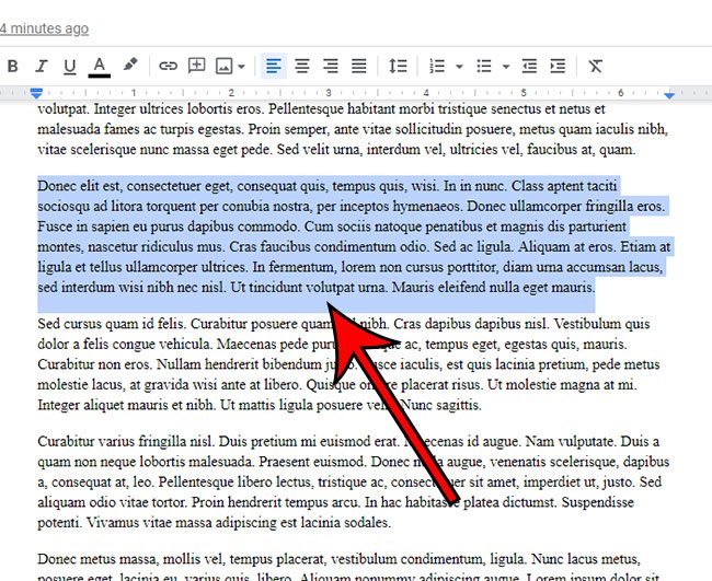 - Välj den rad du vill dra in, oavsett om det är den första raden i ett citat eller början av ett stycke. Du kan markera hela texten eller placera markören i början av raden.