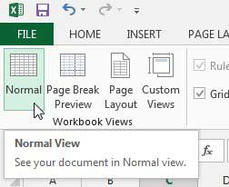 Du kan återgå till den normala vyn genom att klicka inuti någon av cellerna, klicka påSefliken högst upp i fönstret och klicka sedan påNormalknappen iArbetsbokvyerdelen av fönstret.