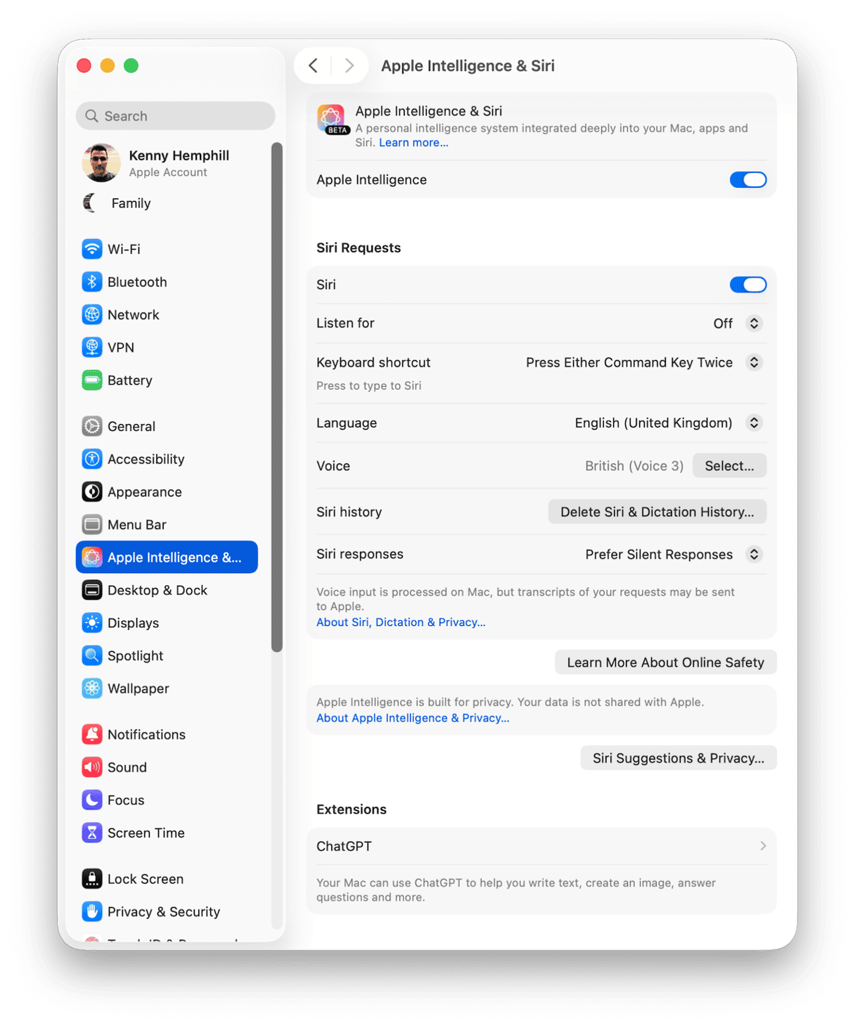- Gå till Systeminställningar > Apple Intelligence & Siri.