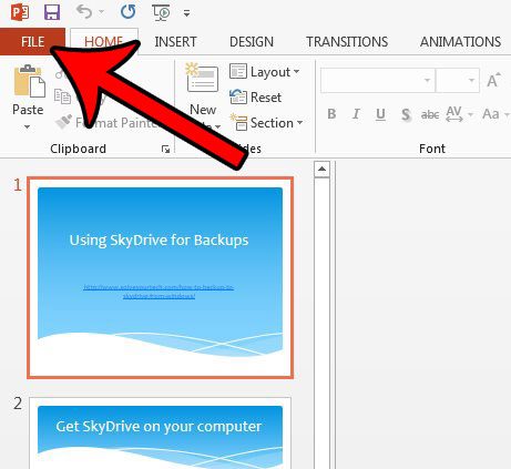 Vi kommer att använda en metod som ändrar en inställning via Print-menyn i Powerpoint 2013, så att du sedan omedelbart kan testa ändringarna för att säkerställa att du uppnår önskat resultat.