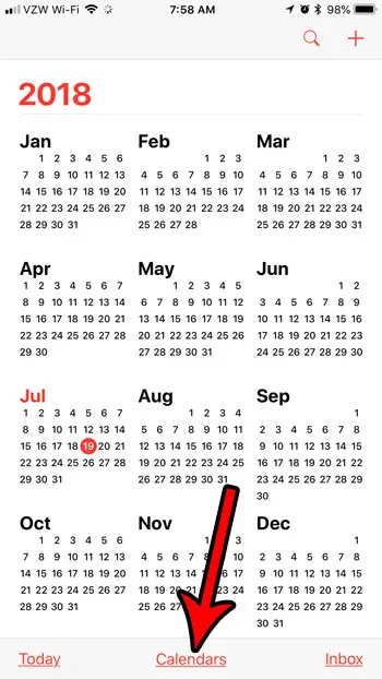 Genom att slutföra dessa steg kommer du att ändra en inställning på din iPhones kalender så att helgdagarna inte längre visas automatiskt i kalendern.